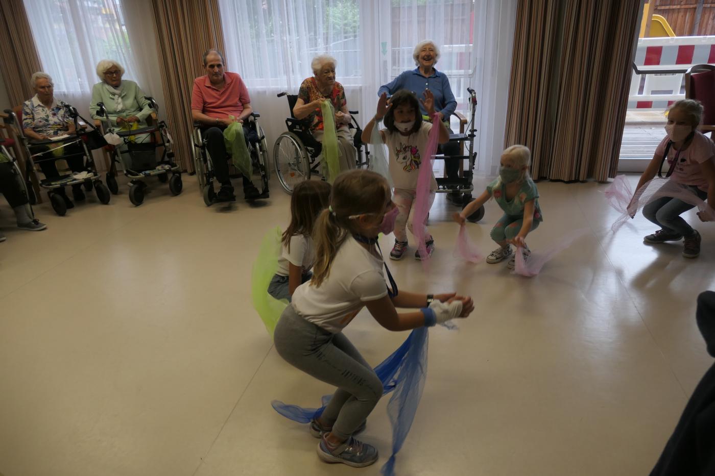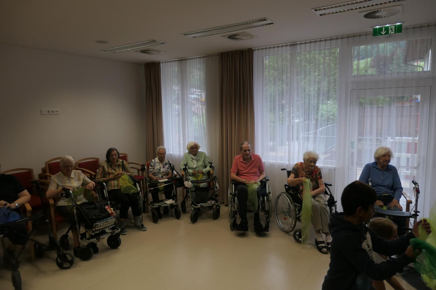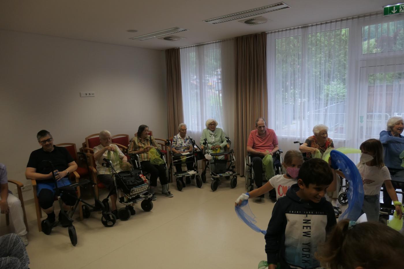 Um den Heimbewohnerinnen und Bewohnern einen schönen, erfüllten Sommer und viel Gesundheit zu wünschen, besuchten wir diese am Donnerstag, den 1. Juli. Wir überreichten ihnen mit netten Zeichnungen versehene Sommerwünsche und führten einen Fischetanz vor. Jung und Alt hatten viel Spaß dabei und eines versprachen wir schon vorab: Wir kommen wieder!