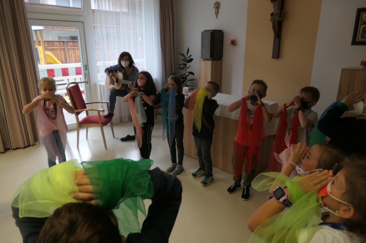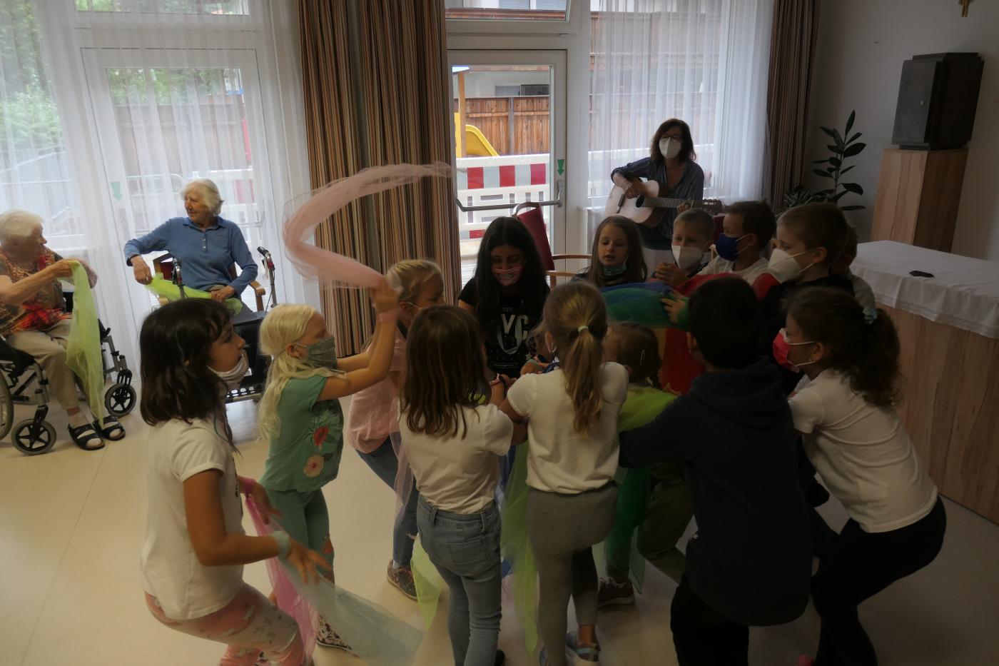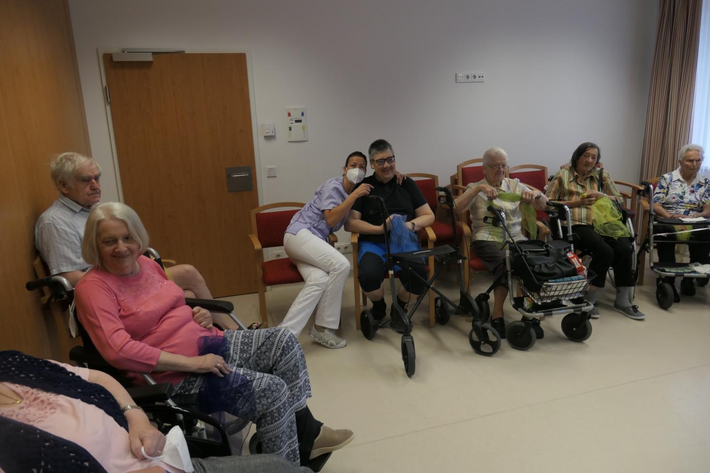 Um den Heimbewohnerinnen und Bewohnern einen schönen, erfüllten Sommer und viel Gesundheit zu wünschen, besuchten wir diese am Donnerstag, den 1. Juli. Wir überreichten ihnen mit netten Zeichnungen versehene Sommerwünsche und führten einen Fischetanz vor. Jung und Alt hatten viel Spaß dabei und eines versprachen wir schon vorab: Wir kommen wieder!