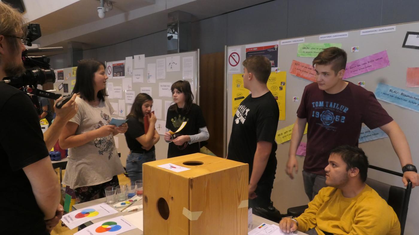 Dieses vermeintlich einfache Thema führte zu einer ganzen Reihe von weiteren Fragen. Farbenlehre, Physikalische Phänomene, Gen-Strukturen und vieles mehr wurde erkundet.