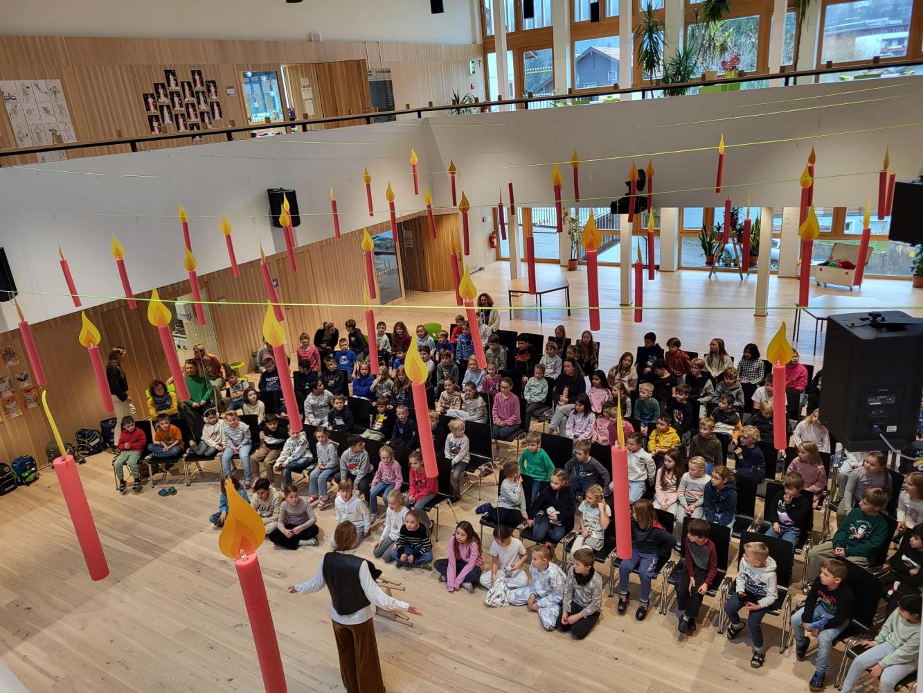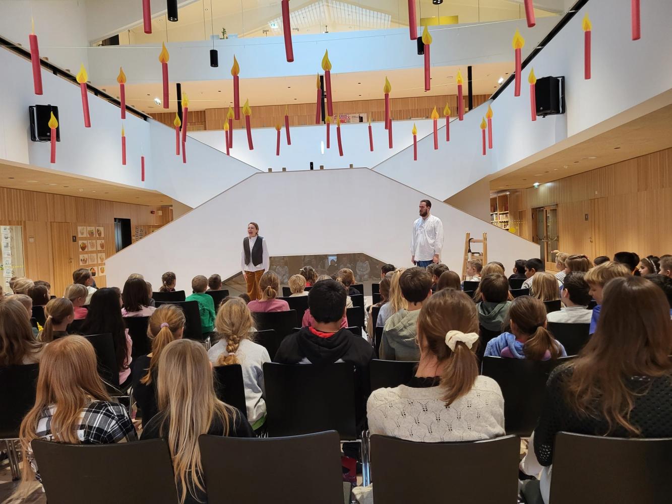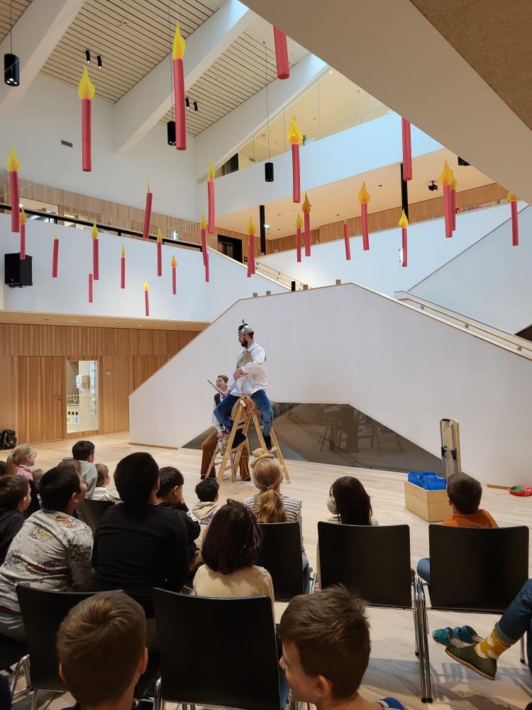 Am 4. Dezember wurde unsere Schulaula zur Bühne für eine mitreißende Theateraufführung! Zwei professionelle Theaterspieler brachten mit ihrem humorvollen Stück "Don Kiwischote", angelehnt an den Abenteuerroman Don Quijote, die gesamte Schulgemeinschaft zum Lachen. Ein besonderer Moment war das gemeinsame Singen am Ende der Aufführung.