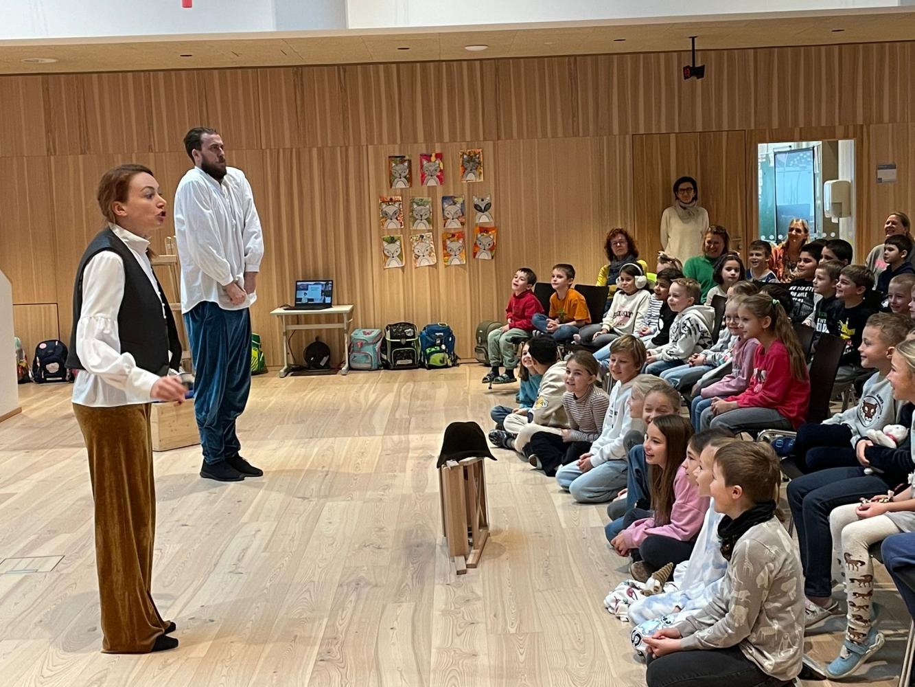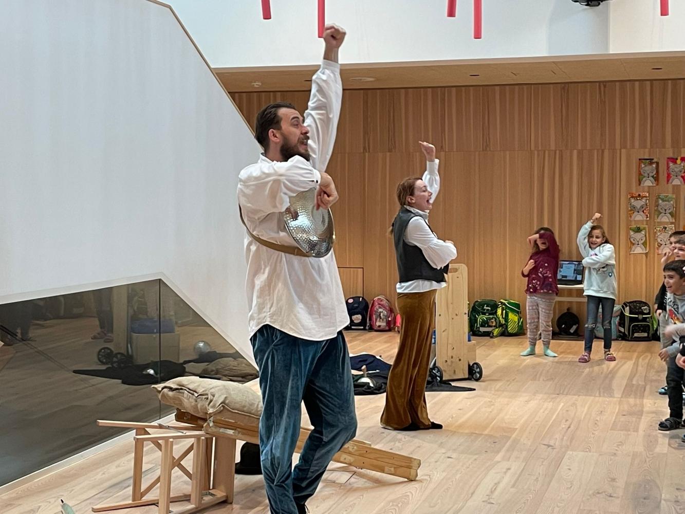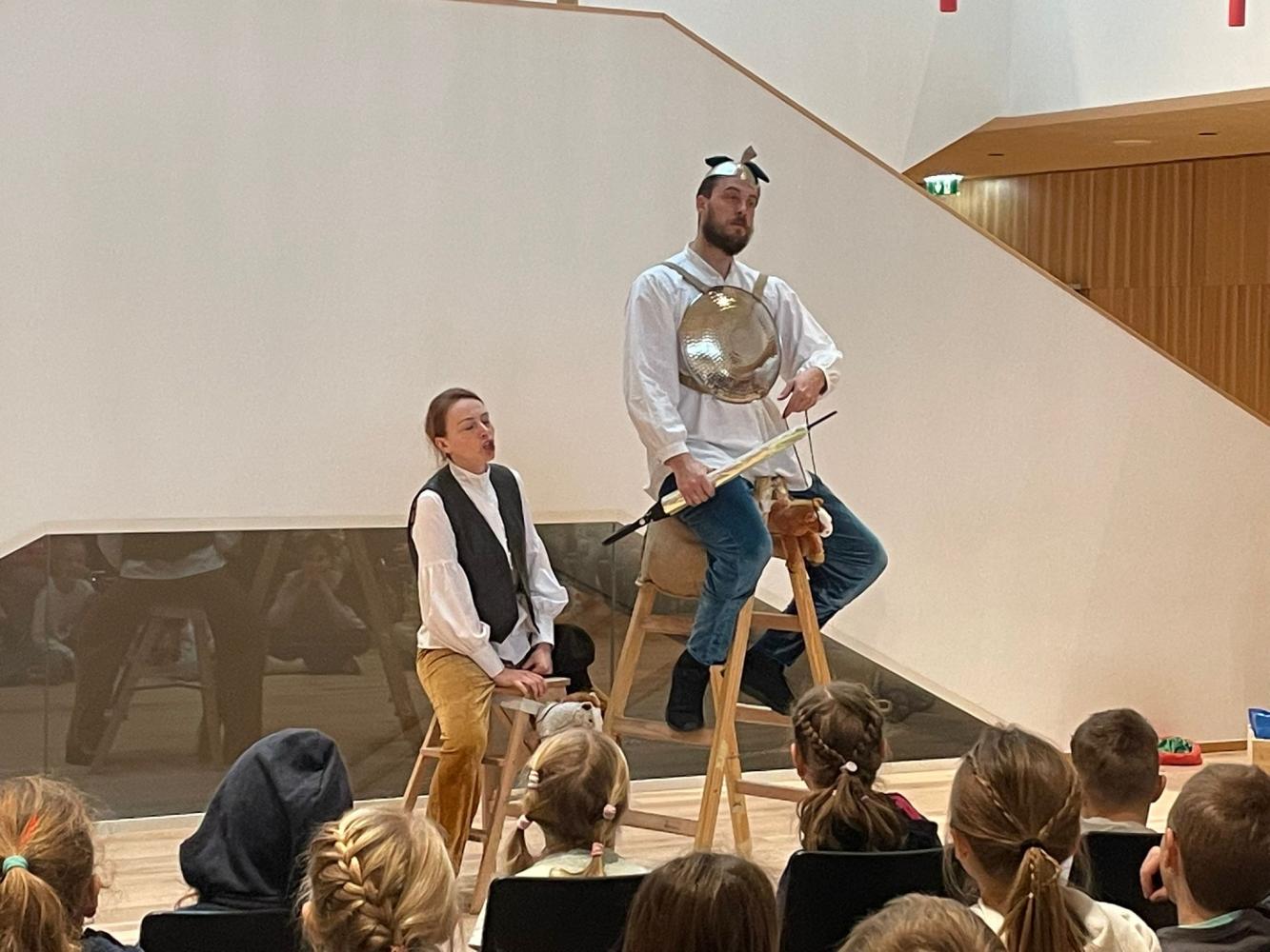 Am 4. Dezember wurde unsere Schulaula zur Bühne für eine mitreißende Theateraufführung! Zwei professionelle Theaterspieler brachten mit ihrem humorvollen Stück "Don Kiwischote", angelehnt an den Abenteuerroman Don Quijote, die gesamte Schulgemeinschaft zum Lachen. Ein besonderer Moment war das gemeinsame Singen am Ende der Aufführung.
