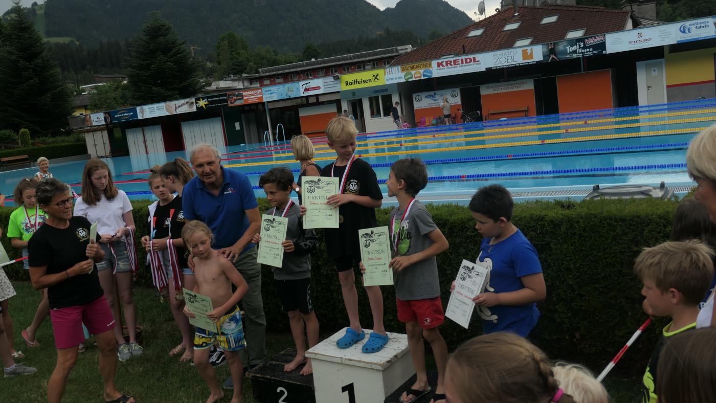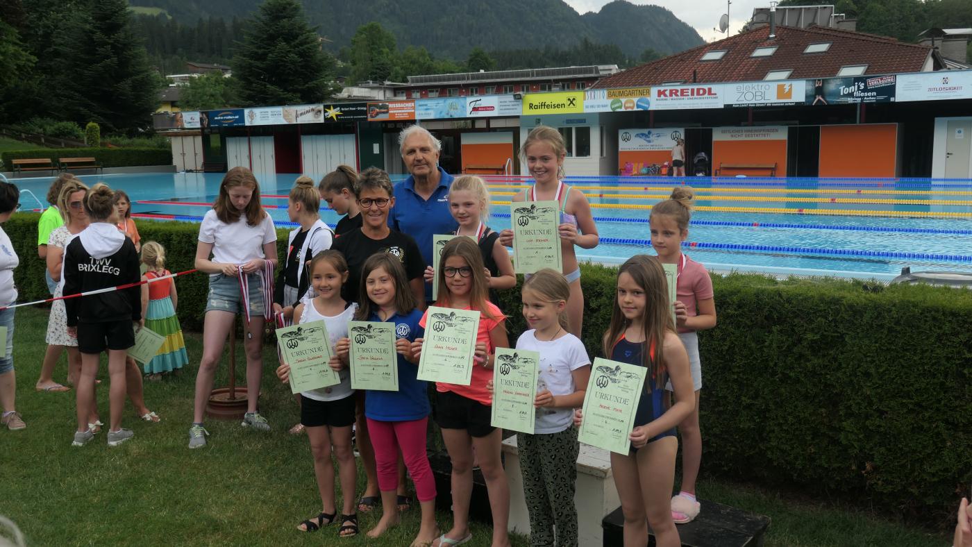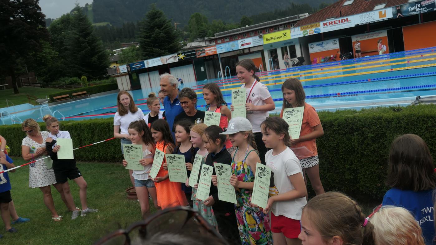 Heuer waren 16 Kinder der Volksschule Brixlegg am Start zum Schülerschwimmen. Jede und jeder hat Punkte erschwommen. Einige haben ihre Altersklasse sogar gewonnen. Die Zuschauer feuerten die Schwimmerinnen und Schwimmer begeistert an.