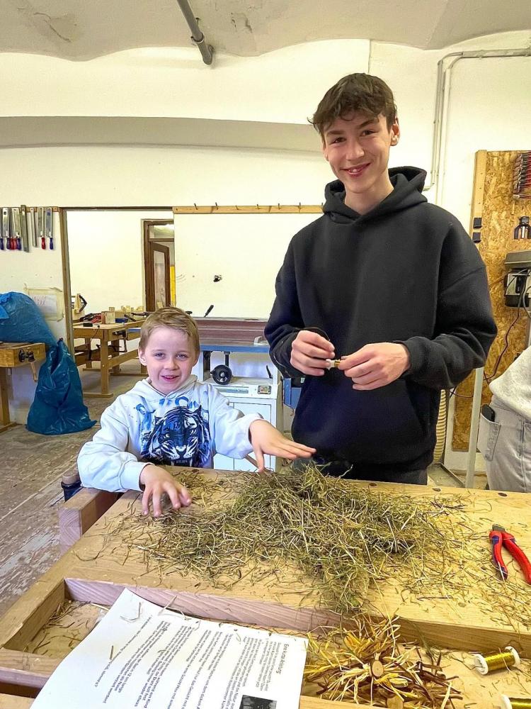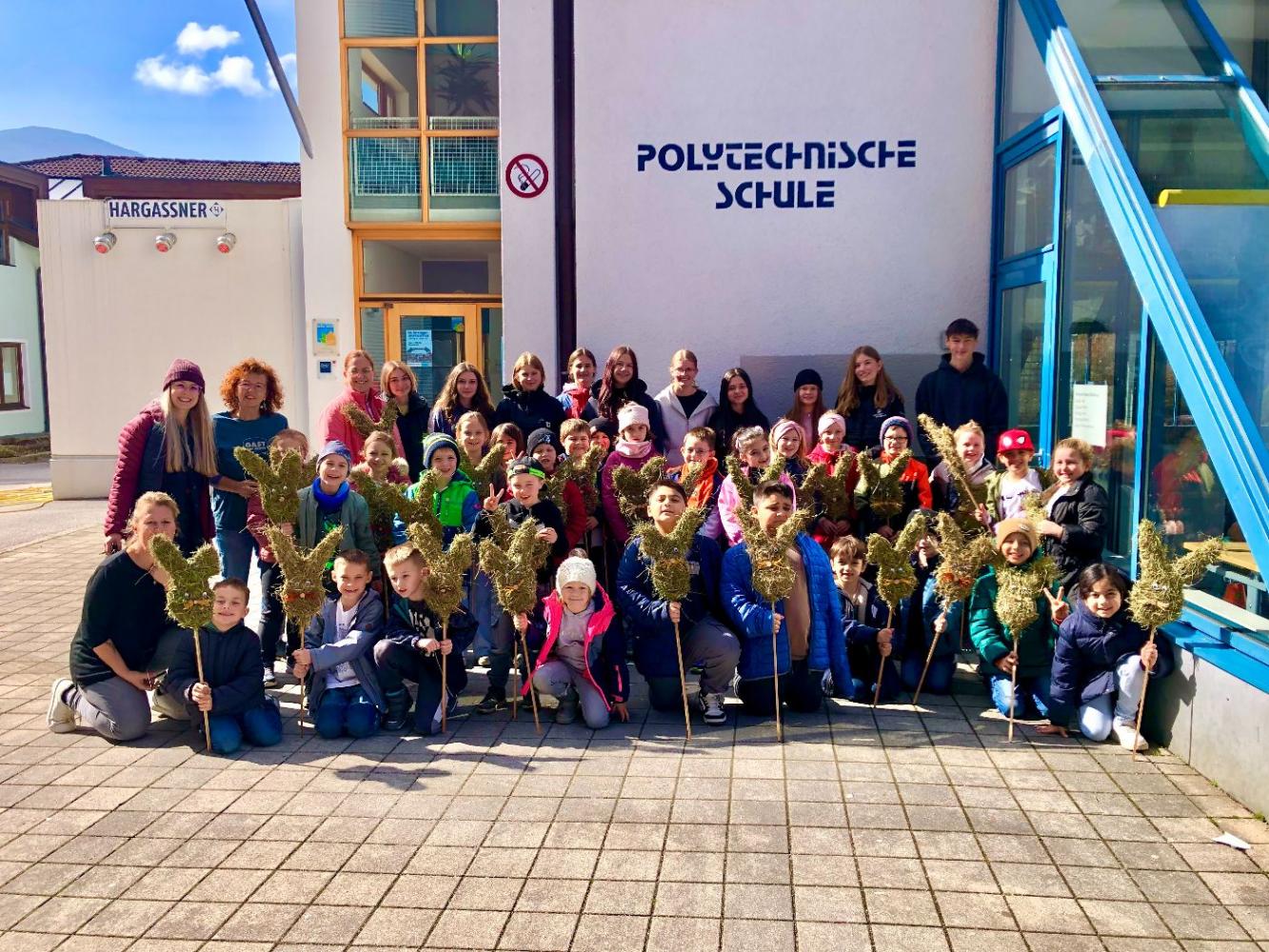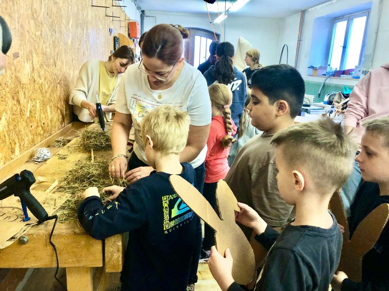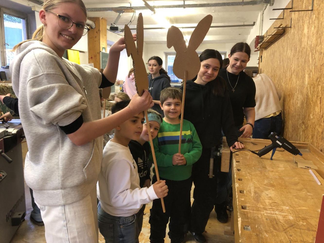 Kurz vor den Osterferien wanderten die Erstklässler gemeinsam zur Lehrwerkstatt der PTS - Schüler, um dort mit Hilfe der Jugendlichen Heuhasen zu basteln. Herzlichen Dank an Frau Direktorin Lindner-Moser und alle ihre Schützlinge, ohne deren Unterstützung wir bestimmt nicht so tolle ,,Kunstwerke“ zustande gebracht hätten!